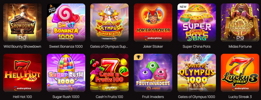 В казино представлены разработки от известных в игровой системе провайдеров, таких как: Igrosoft, Novomatic, Evoplay Entertainment. Основной акцент сделан на фруктовые слоты, но можно найти и игры другой направленности.
