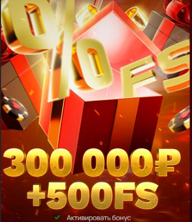 Завлечение новых подписчиков происходит с помощью щедрого приветственного бонуса. После прохождения регистрации и активации личного кабинета гэмблер получит себе на счет до 300 тысяч рублей и 500 фриспинов. Это поощрение в реальности разделено на 4 части выдается только при пополнении счета.