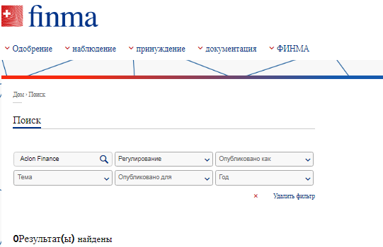 В реестрах Управления по надзору за финансовым рынком Швейцарии данные о брокерской компании Aclon Finance отсутствуют.