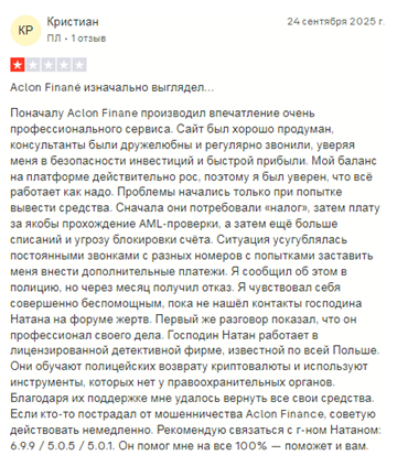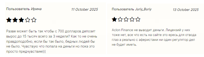 Сайт Aclon Finance очень опасен с точки зрения скама. Мошенники не поленились пройти официальную регистрацию, чтобы войди в доверие к подписчикам. Они имитируют проведение сделок и стараются обнулить депозит. Если трейдер пытается забрать деньги раньше, то процедура кэшаута будет заблокирована. Сотрудничать с этой компанией мы не рекомендуем.