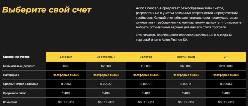 Aclon Finance имеет швейцарскую прописку и регулирует свою деятельность, согласно местного законодательства. Фирма заявляет, что полностью поддерживает актуальные протоколы безопасности и обеспечивает защиту счетов от несанкционированного влияния.
