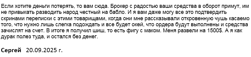 Отзывы подписчиков хорошо описывают здесь скам. Пользователи указывают, что ведение торгов тут просто имитируется, за забрать деньги со счета вообще невозможно.