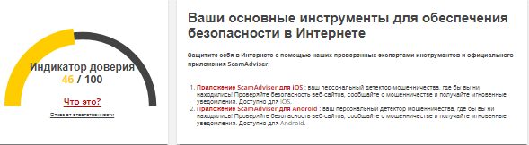 Синтетический анализатор мошенничества оценивает работу рассматриваемого брокера только в 46 баллов. Это низкий показатель для того, чтобы говорить о полном доверии компании.