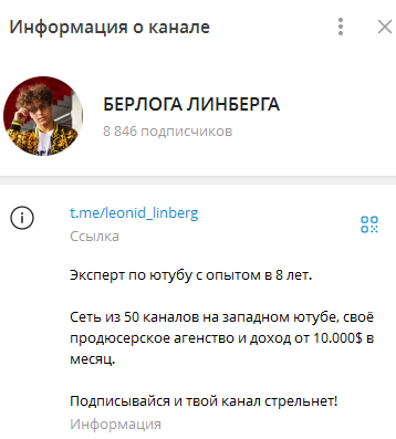 Это значит, что админ занимается ботоводством и при помощи фейковых аккаунтов пытается развить свою популярность. К тому же, с июня ведущий перешел на другой Телеграмм-канал. Вот только в Ютубе выложена ссылка на старый ресурс. Уровень профессионализма Линберга явно низкий, если он подсовывает подписчикам неактуальные линки.