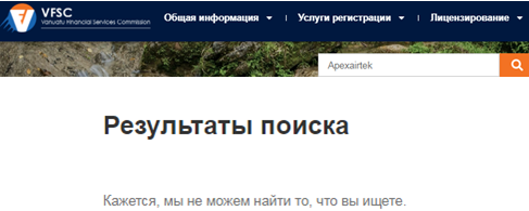 Для того, чтобы убедить подписчиков в законности и прозрачности работы брокера скамеры выстроили целую сеть дополнительных поддельных сайтов. Брокер указывает, что его деятельность одобрена известными контролирующими организациями, а именно: CSSF, FCA, DFSA, VFSC. Клиентам предлагается лично посетить странички этих регуляторов рынка, чтобы увидеть там наличие регистрационной записи о Apexairtek. Вот только опубликованные ссылки заведут трейдеров на специально подготовленные цифровые поддели, которые полностью имитируют внешний вид электронных представительств бюро. Обман здесь становится явным, если перепроверить доменные имена.В реестрах указанных финансовых регуляторов нет данных о нашей компании.