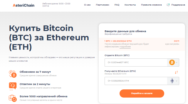 Своими сильными сторонам администрация обменника AsteriChain называет: