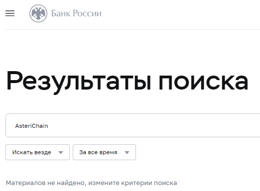 Поскольку обменник подчеркивает свое предназначение для обслуживания русскоговорящих пользователей, сведения о нем должны быть в базе данных Центробанка. Но запрос к ведущему государственному регулятору не приносит желаемый результат, сведений о фирме AsteriChain там нет.