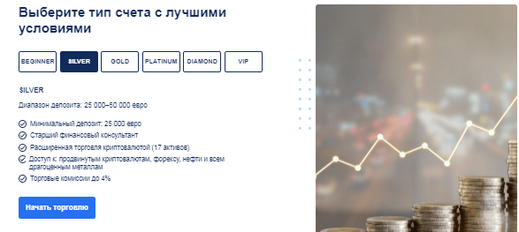 Для трейдеров здесь подготовлено целых 5 тарифных планов. Такой ассортимент дает возможность подобрать подходящий вариант спекулянту любого уровня. Начальный депозит составляет всего 250 евро. Правда, чтобы перейти на следующую ступень понадобится целых 10 000. ВИП-клиенты получают привилегированное обслуживание. Им выделяется личный бухгалтер и предоставляется персональный план управления финансами.