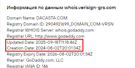 По данным интернет-реестра сайт фирмы был запущен лишь в июле 2024 года. Кроме того, 18 сентября 2025 весь контент здесь был обновлен. Таким образом площадка очень молодая и еще не подтвердила свою стабильность в вопросе оказания услуг. В любом случае доверие указанной компании должно быть ограничено.