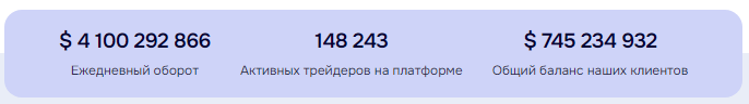 Благодаря целенаправленной работе фирма смогла достичь ощутимых коммерческих показателей. Если верить изложенной на сайте информации, то на площадке зарегистрировано 148 243 трейдера, общий объем средств на депозитах которых превышает 745 миллионов долларов США. Ежедневно здесь заключается сделок на 4 100 292 866 USD.