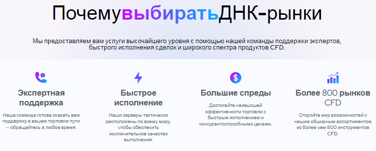 Компания DNA Markets подчеркивает качественную организацию работы службы поддержки. Профессиональные консультанты владеют несколькими языками и поэтому легко выстроят продуктивный контакт с клиентами по всему миру. Для того, чтобы получить помощь можно воспользоваться телефоном, электронной почтой или встроенной формой переписки.