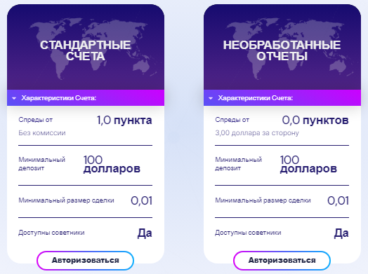 Для клиентов подготовлено только 2 тарифных плана. Минимальный депозит в обоих составляет всего 100 австралийских долларов. В стандартном счете спред находится в диапазоне от 1 до 3 пунктов, а для второго предложения данный показатели вообще может не устанавливаться или достигать лишь 0,3.