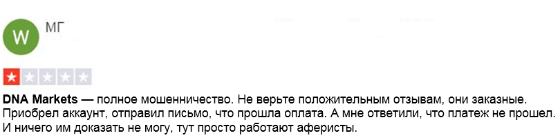 Найденные отзывы служат лучшим доказательством того, что фирма DNA Markets управляется аферистами. Клиенты указывают, что легко здесь выполняется только пополнение счета. Сами торги организованы некорректно. А если попытаться назначить кэшаут, то можно вообще столкнуться с блокировкой учетной записи.