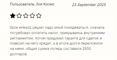 То, что Erleadz — брокер мошенник,я убедился, когда подал заявку на вывод прибыли.Менеджер стал начал упорно на меня давить, чтобы я еще пополнил счет. Когда я ответил, что у меня нет больше денег, буквально начал требовать, чтобы я взял кредит или микрозайм. Естественно я отказался и на этом сотрудничество с компанией для меня закончилось. Деньги аферисты присвоили себе.