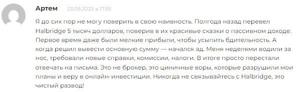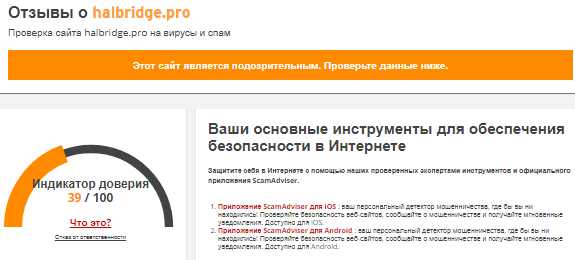 Сайт Halbridge является очередным мошенническим продуктом от сетевых скамеров. Аферисты готовят подобные веб-площадки целыми сериями, чтобы стараться обмануть как можно больше клиентов. Учитывая низкую стоимость рассматриваемой странички, администрация не очень будет переживать, если ее закроют. Самостоятельно добиться здесь справедливости невозможно.