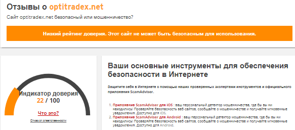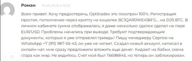 Честную обратную связь про Opti TradeX можно найти на независимых форумах для трейдеров. Трейдеры указывают, что рассматриваемая площадка является недобросовестным брокером, который специализируется на бинарных опционах. Фирма разоряет своих клиентов и присваивает их деньги. Организовать кэшаут тут невозможно.