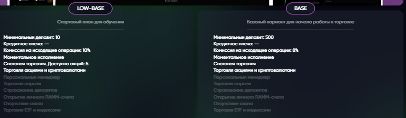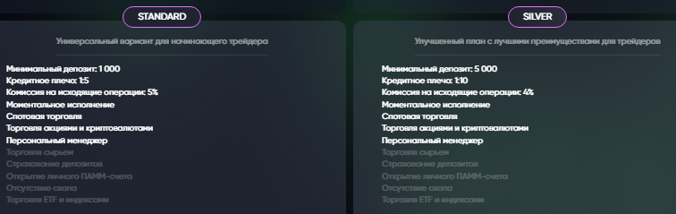 Чтобы иметь реальные шансы выйти на существенный доход депозит должен составлять от 1000 USD. Трейдер получит поддержку с персональным менеджером. ВИП- подписчики могут рассчитывать на привилегированные условия. В таких пакетах отсутствует СВОП и предусматривается открытие личного ПАММ-счета.