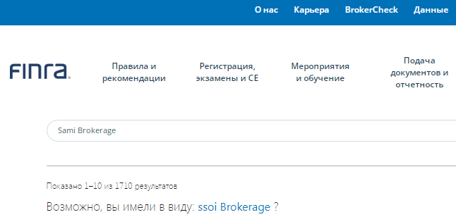 В реестрах Службы регулирования отрасли финансовых услуг (FINRA) никаких данных о компании Sami Brokerage мы не нашли.