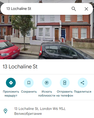 Фактический адрес —13 Lochaline Street, Лондон, Англия, W6 9SJ