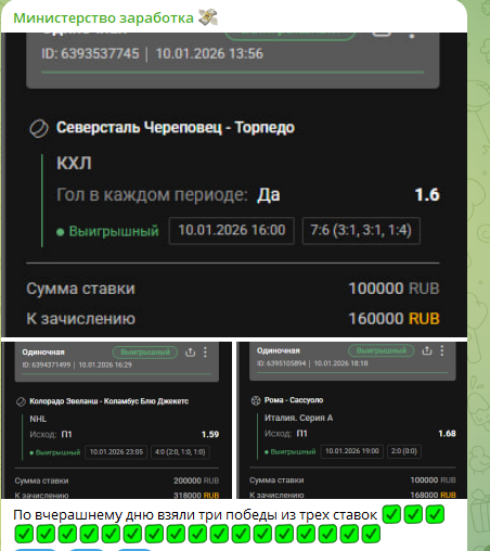 Все что необходимо для этого – это качественные сигналы по ставкам от профессионалов с гарантией. Эти сигналы вы сможете найти в телеграмм группе «Министерство заработка 💸» по ссылке ниже: