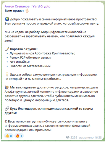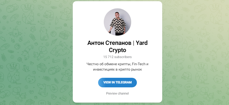 Экономические блогеры выступают полезным альтернативным источником информации о состоянии рынка. В отличие от официальных СМИ они лишены ограничений, которые диктует корпоративная политика. Телеграмм-канал Антон Степанов | Yard Crypto регулярно выкладывает сообщения о состоянии криптосферы. Есть ли смысл подписываться на этот ресурс и можно ли с его помощью вообще заработать — покажет небольшой обзор.