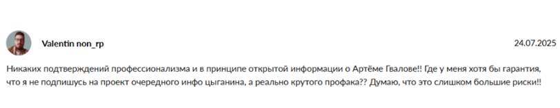 Хотя Артем рассказывает, что регулярно получает восторженные отзывы от подписчиков, реальная обратная связь о нем наполнена негативом. Имеющие опыт взаимодействия с ним клиенты заявляют, что эффективность предложенных материалов для раскрутки бизнеса близка к нулю. Обратно вложенные деньги админ не отдает.