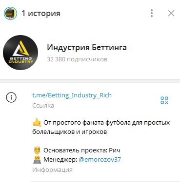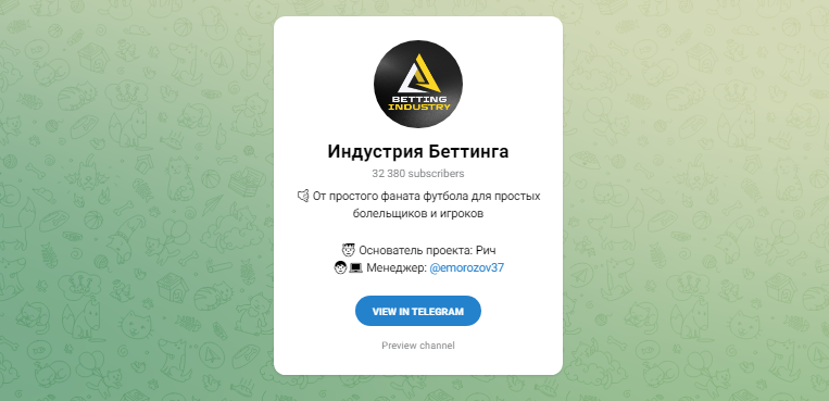 Телеграмм-канал — https://t.me/Betting_Industry_Rich
