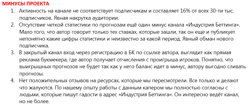 Реальные отзывы о Телеграмм-канале Индустрия Беттинга гораздо более прохладные. Бетеры считают, что отдача от платной подписки не стоит потраченных средств. Рич не является профессиональным капером.