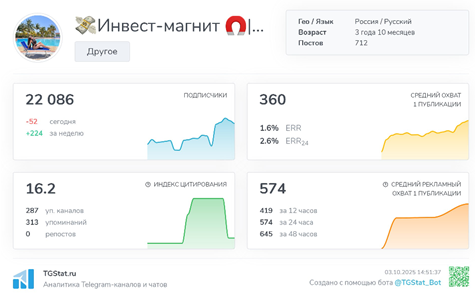 Количество последователей Телеграмм-канала 💸Инвест-магнит 🧲|🇷🇺 составляет 22 025 человек, при этом сама площадка действует уже 3 года и 10 месяцев. График изменения объема клиентской базы выглядит нереальным, он содержит падения и резкие подъем.