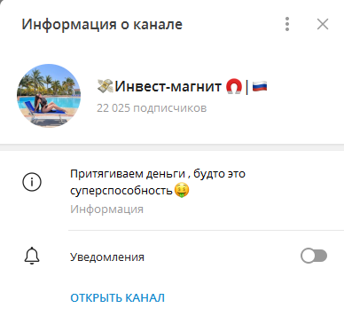 Онлайн-заработок для многих кажется отличной альтернативой обычной трудовой деятельности. Администратор Телеграмм-канала 💸Инвест-магнит 🧲|🇷🇺 всячески поддерживает это утверждение, она обещает своим клиента отличные выплаты при скромных вложениях. Можно ли ей верить покажет экспресс-аудит.