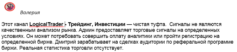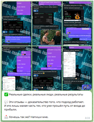 Для заманивания клиентов админ имитирует наличие положительной обратной связи от неких пользователей. В боте публикуются десятки скриншотов переписки с благодарственными словами. Шаблонность указанных текстов видна сразу, эти отзывы написаны одним человеком и направлены только на создание положительного имиджа Телеграмм-канала LogicalTrader — Трейдинг, Инвестиции.