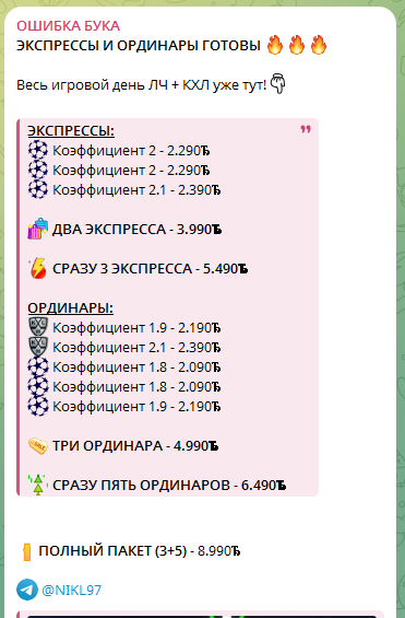 В мессенджере Телеграмм растет число каналов со спортивной тематикой. И если одни блогеры просто занимаются обзорами, то другие активно продают с помощью этого способа прогнозы на спортивные события. Администратор ресурса ОШИБКА БУКА убеждает посетителей, что сотрудничество с ним поможет обогатиться. Так ли это на самом деле, покажет небольшой обзор.