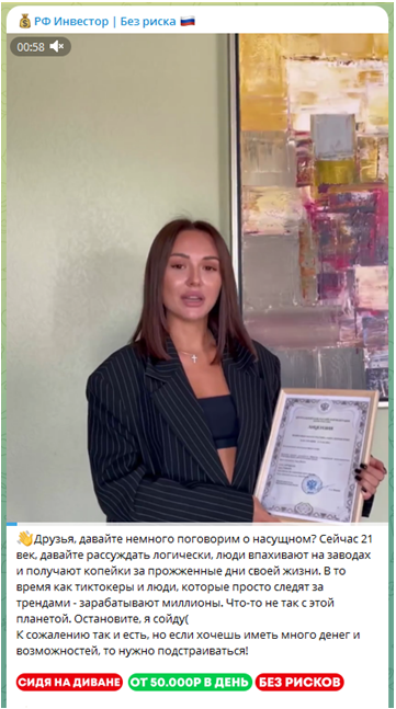 Ведущая представляется именем Ульяна. В приветственном видеосообщении она призывает всех сотрудничать с ней. Благодаря собственной системе администратор смогла выйти на постоянный и очень высокий доход, который она получает при помощи трейдерской работы.
