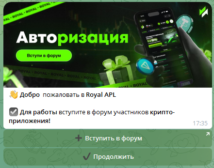 Телеграмм-бот — https://t.me/RoyallAppBot